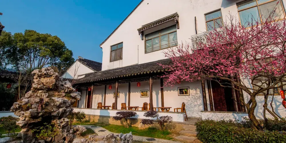 虹飲山房是清初木瀆文人徐士元的私家園林,乾隆下江南每遊木瀆,必先在此棄舟登岸,入園遊歷。因而,當地都習慣稱虹飲山房為韓隆的民間行宮。紀曉嵐、和珅、劉墉等大臣也曾數次下榻於此,留下了段段佳話。虹飲山房由秀野園和小隱園二處明代園林聯袂而成,其“溪山風月之美,池亭花木之勝”遠勝過其他園林。清末,小隱園部分為一代“刺繡皇后”沈壽故居。