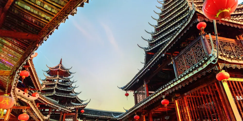 萬和鼓樓位於縣城舞水河東岸,是侗族標誌性建築。2005年建成,由中心蘆笙樓、琵琶樓、地筒樓與兩個對歌樓五個鼓樓組成,並由360個龍燈組成的的檐廊將外圍四個鼓樓相連,圍成一個圓寶,護住中心鼓樓,比喻龍到此處護着寶永遠不走了。