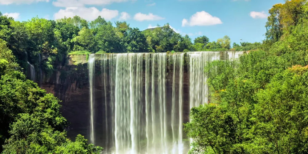 萬州大瀑布羣旅遊區位於萬州區甘寧鎮,屬國家4A級旅遊景區,萬州大瀑布寬151米,高64.5米,面積9739.5平方米,是亞洲瀑布面積前列的單掛瀑布,被譽為“亞洲第一瀑”。萬州大瀑布不僅壯觀,還是一個可以360度全景觀賞的瀑布,您可以在陸安橋上觀瀑,也可以在水上乘坐竹筏觀瀑,不僅可以和大瀑布來個親密接觸,還可以體驗到逆流而上的痛快。