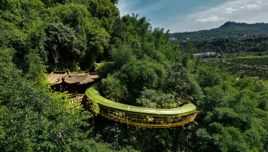 想體驗一把速度與激情?那叢林飛車必須要來打卡,驚險刺激的滑道,蜿蜒盤旋在山林之上,宛如卧龍。