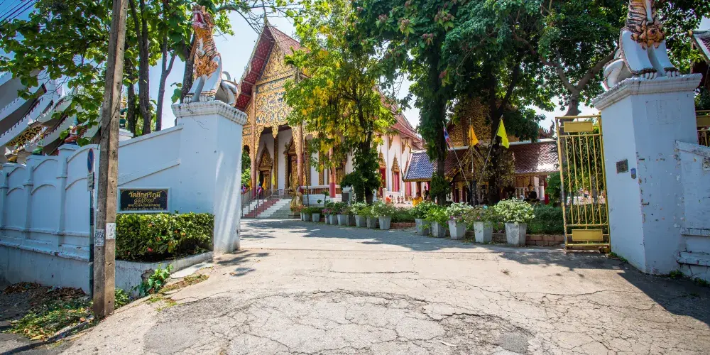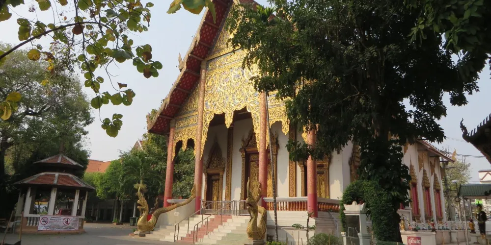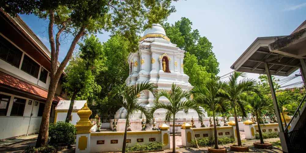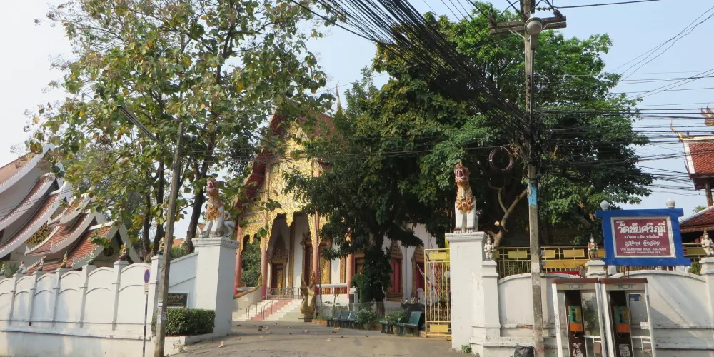 查斯裡朋寺位於老城的東北方向,遠遠地望去這裡有有一座有醒目的白塔,中間隔著一條河。寺廟囊括了具泰國中部特徵的巨大僧院和大禮拜堂。佛塔聳立在遠處角落裡,四周的櫥壁裡也放著著許多的佛像。