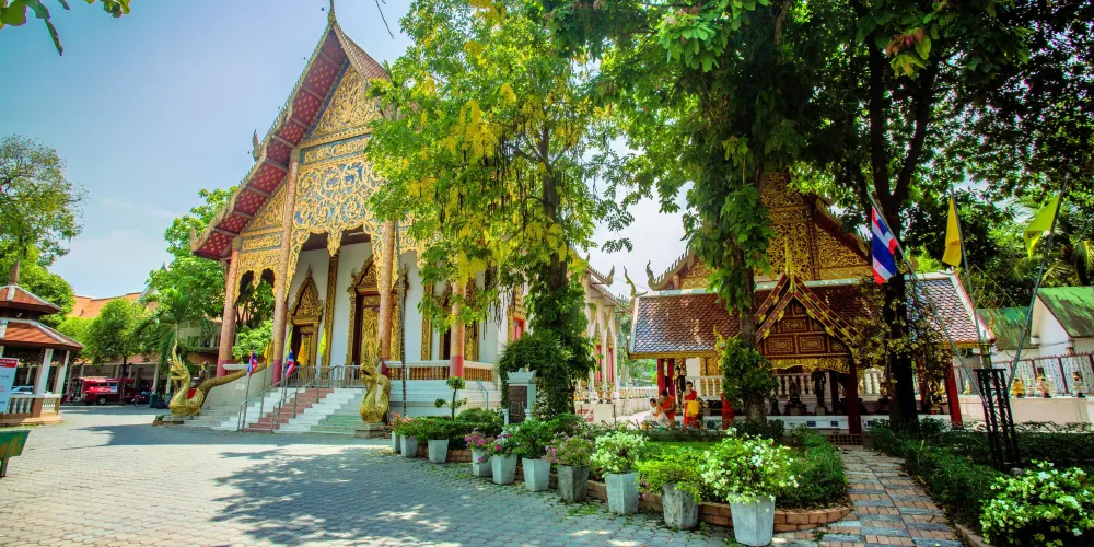 則評價清曼寺位於清邁古城的東北部,建於1297年,是清邁古老的寺廟之一,在清邁建城初期由曼格萊王親自監督建造,也曾是他的居所。這裡不僅環境優雅靜謐,建築華美精緻,還保留了不少古代王朝的遺跡。主要建築包括兩座典型的蘭納式殿堂,里外都是金碧輝煌。主殿旁的小殿,玻璃神龕內供奉著兩尊佛像,嵌滿了寶石,十分珍貴。走出殿堂,來到主殿後方,又會看到一座以大象雕刻為裝飾的方形佛塔,是清曼寺的又一特色。