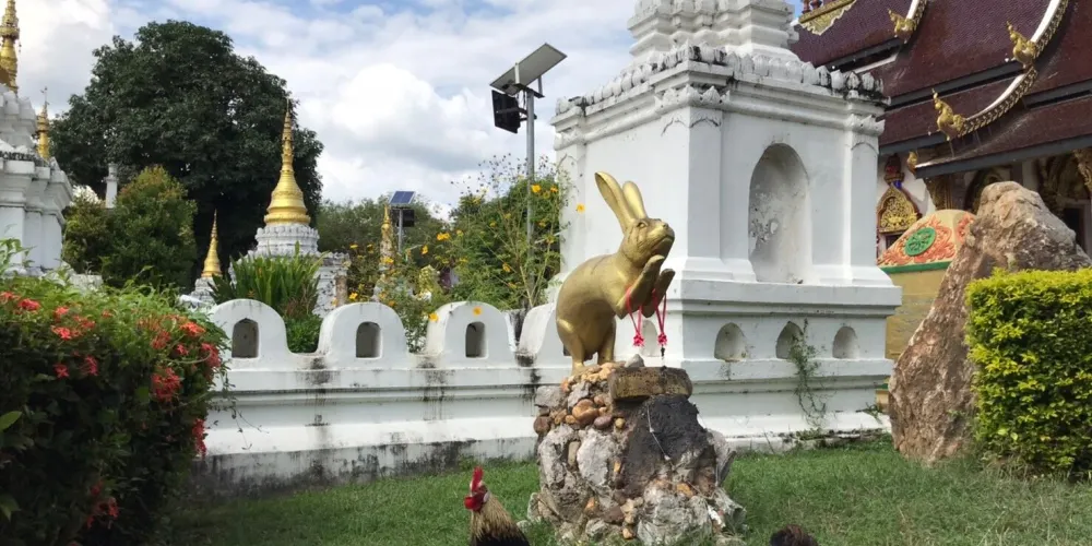 這座寺廟中,一共有20座白色的佛塔,Sao在泰北方言中意為20。在這座寺廟內還有一座特別的實心金佛像,佛像高30厘米,重達1507克。