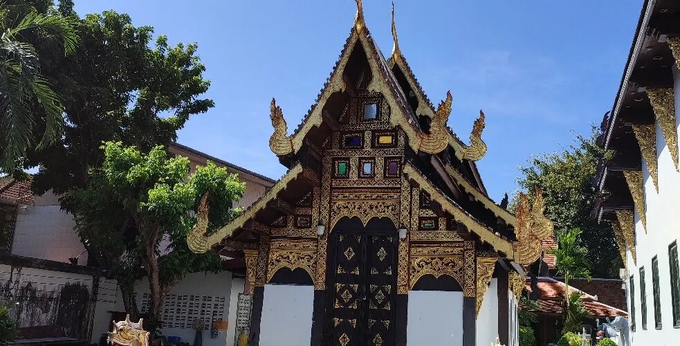 整體來說寺廟的面積還算較大,有主殿、小佛殿、僧房。主殿內掛滿了信徒及遊客們的福條,花上100泰銖求一個福條,你可以在上面寫上祝福的話。寺內還有圖書館、博物館和僧侶學校,幾乎每天你都可以看到穿著橘色長袍的僧侶拿著厚厚的書本從僧舍內出來,坐在菩提樹下靜靜地閱讀。有時候有些外國遊客還會坐下來和他們小聲交談,一邊說一邊做筆記,探討一些關於人生哲學的話。