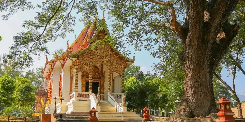 整體來說寺廟的面積還算較大,有主殿、小佛殿、僧房。主殿內掛滿了信徒及遊客們的福條,花上100泰銖求一個福條,你可以在上面寫上祝福的話。寺內還有圖書館、博物館和僧侶學校,幾乎每天你都可以看到穿著橘色長袍的僧侶拿著厚厚的書本從僧舍內出來,坐在菩提樹下靜靜地閱讀。有時候有些外國遊客還會坐下來和他們小聲交談,一邊說一邊做筆記,探討一些關於人生哲學的話。