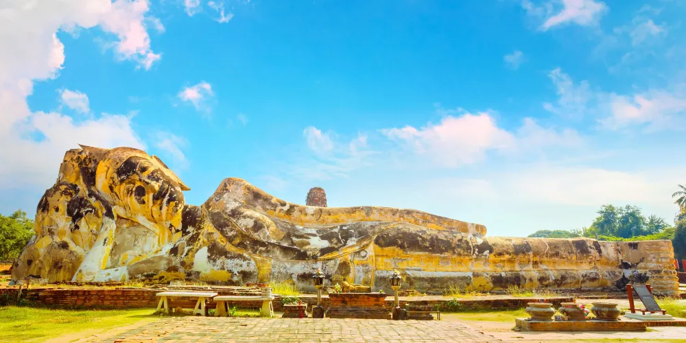 大城臥佛寺又稱羅卡雅蘇塔寺,在內城的西邊三分之一處,有一條河把它和大城曆史公園中的其它寺廟分開,也就是內城的西北角。