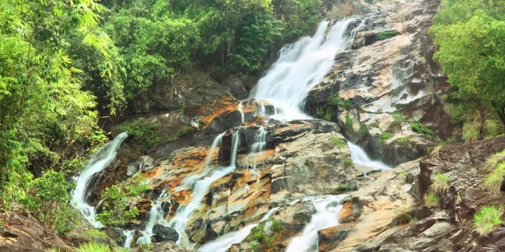 象牙瀑布是水流循著七個台階順流而下,然後再分為兩道,就如同大象的兩顆象牙一般,因此而得名,尤其在雨季過後,水流尤其豐沛壯觀。另一個有名的景點是大象泉之穴,其中有部分洞穴,內部完全是奇形怪狀的石昏和鍾乳石,有的甚至形同佛像一般,非常具有觀光價值。
