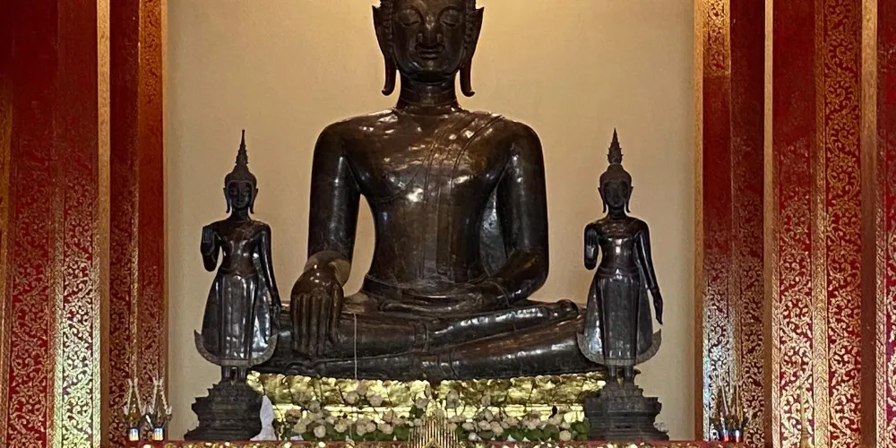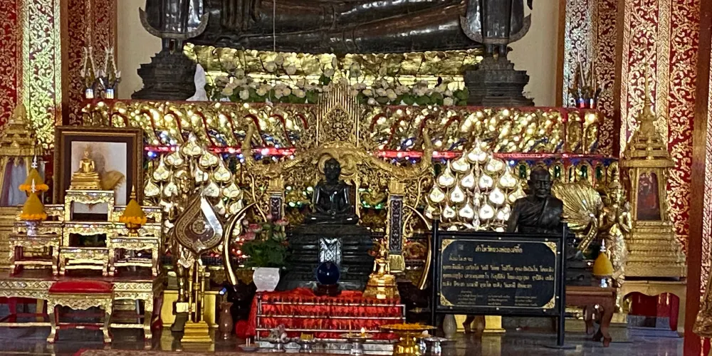 初建成時,黑塔全身都覆滿了金箔,後來被暹羅入侵者盜走。現在塔身表面很多地方被風化,通體黑色,上面有著時間留下的斑駁印記。
