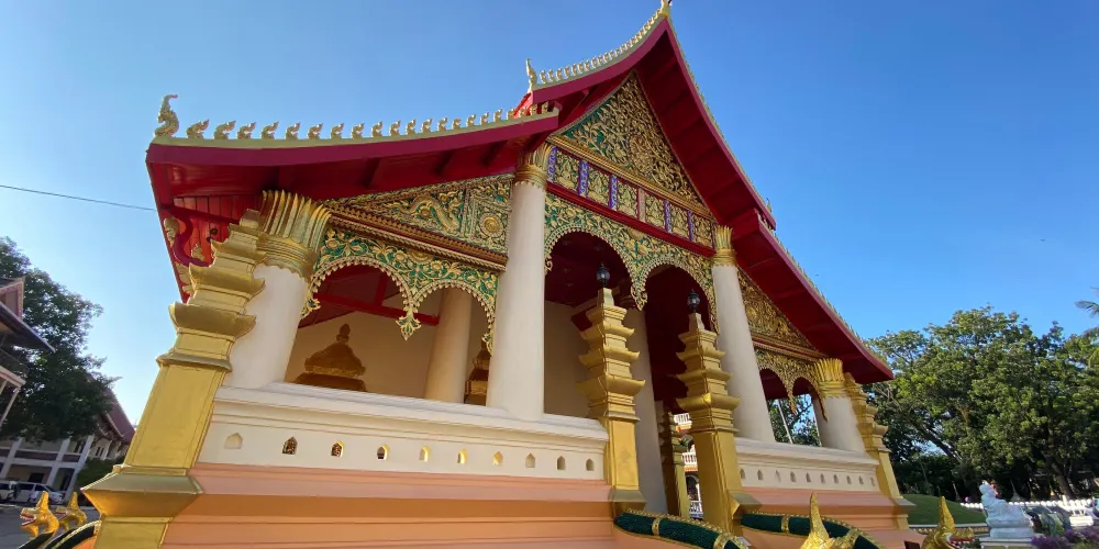 則評價由國王阿諾旺(Anouvong)在1818年建造的沙格廟是永珍最古老的寺廟。 昭阿奴王曾經在曼穀宮廷裡受過教育,因此西薩格寺的風格也是模仿當時的暹羅曼穀大寺院而建,外有二層迴廊,屋頂為五層,寺內供列著近千尊佛像。而且在庭院裡還栽種了很多椰子樹、香蕉樹和芒果樹。 在暹羅攻打寮國時,也許正是建築風格上的相似,才使西薩格寺免於暹羅人的毒手,而其他寺廟則被夷為平地。不過儘管躲過了戰爭,但好運卻未始終伴隨西薩格寺,寺廟初建時供奉的佛像卻沒有保存下來,絕大部分都被泰國人搜颳走了;牆上曾經繪有佛教故事的壁畫已被歲月侵蝕得所剩無幾。在1924年到1930年間,法國人曾對寺廟進行過修複,所以也使得這座寺廟擁有一些特有的風格。在迴廊內側的牆上有許多小壁盒,裡面供奉了兩千多個銀質或陶瓷佛像,他們的年齡、尺寸和材質(木質、石質和銅質)都各不相同。大部分佛像都是在16到19世紀時的永珍製造的,也有一些是來自15到16世紀的琅勃拉邦。西薩格寺在一片盛開的繁花綠樹間,曆史混亂的變動並未使寺廟改變初衷,這裡仍是寮國人最喜歡來的寺廟,藝術學院的學生們也將此地當作寫生的很贊場所。