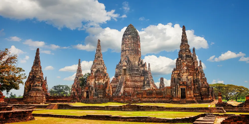 這是一處建於初代國王火葬遺址上的寺廟,規模龐大,在眾多遺迹中值得一覽。據編年史記載,1369年大城的二代王拉梅萱為他的父親初代王選擇的火葬地。現在遊客見到的這座形如玉米的優美高棉式佛塔是後來包若瑪特羅卡納國王在15世紀對寺廟進行改造時建造的。