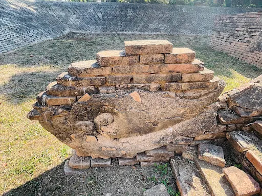 佛塔一共有四面,只有一面有台階,其它三面都修復成了斜坡,遊客不能登塔。圍繞著四方形佛塔走,在四方形佛塔的後面有兩座殿堂。在每座殿堂中間的玻璃櫥中端坐著身披迦裟的高僧蠟像,目光炯炯,栩栩如生。