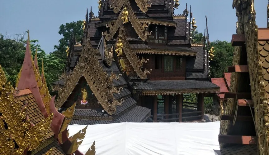 • 寺院內有矗立如林的佛塔,造型各異,色彩鮮豔,十分壯觀。