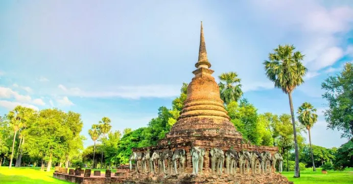 寺廟建於1412年,位於素可泰古城的中區,在古城北門以南,是一座素可泰時期非常普遍的斯裡蘭卡型佛塔。塔的基座上有24頭白色大象,整座佛塔由24頭大象拖起。