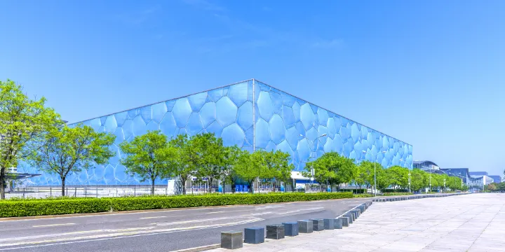 水立方(國家游泳中心)位於北京城區北側,是2008年奧運會游泳、跳水等水上項目的比賽的舉辦地,建築非常奇特,外牆由3000多個不規則的氣枕泡泡組成,遠遠望去像藍色大海中的水分子。若想和清涼的水來個親密接觸,在一層的游泳館和水立方嬉水樂園都能滿足你。此外,夜晚彩燈絢麗,更是拍夜景的好地方。