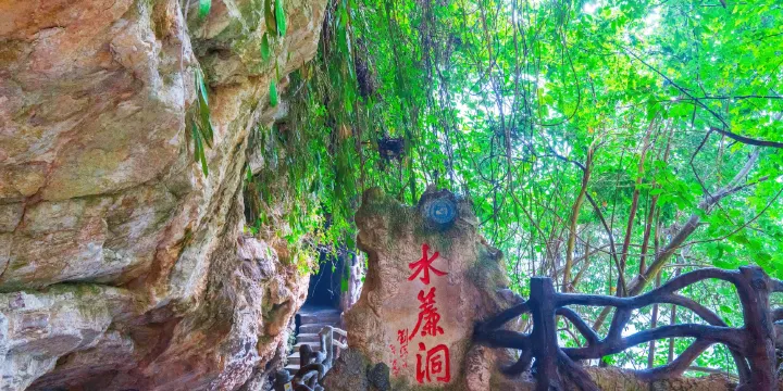 水簾洞位於黃果樹大瀑布四十米至四十七米的高度上,全長一百三十四米,水簾洞由六個洞窗、五個洞廳、三股洞泉和六個通道組成,主要景點有:倒掛仙人掌、古榕懸根、藤簾、袖珍花園、鼓風口、水晶宮、摸瀑台等。穿越水簾洞,還有一個絕妙奇景,從各個洞窗中觀賞到犀牛潭上的彩虹,這裡的彩虹不僅是七彩俱全的雙道而且是動態的,只要天晴,從上午九時至下午五時,都能看到,並隨你的走動而變化和移動。前人:"天空之虹以蒼天作襯,犀牛潭之虹以雪白之瀑布襯之",故題"雪映川霞"。