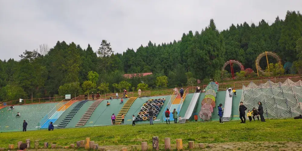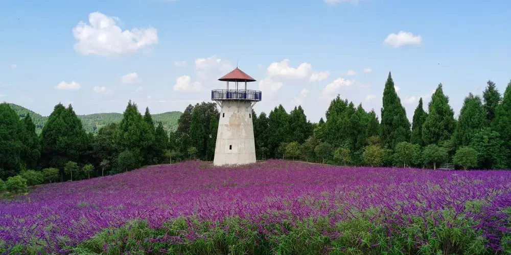 德陽旌陽區新中鎮茶店村的花田錦地·溪月谷目前完成了項目一期1200畝的建設,景區內種植有月季、桃花、牡丹、紫薇、紅楓、櫻花、玉蘭等各種花卉達100萬株,計劃打造成集森林康養、主題花卉觀賞、鄉村生態旅遊、會議培訓基地、特色餐飲、房車營地、帳篷露營、户外拓展基地等各種功能齊全的休閑度假勝地。