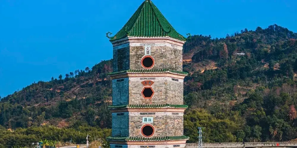該閣為六角形磚木結構的三層樓閣,總高15米,文昌閣看上去就像是一支巨大的豎立著的毛筆,所以當地人稱其為“文筆”。1984年被列為肇慶市文物保護單位。