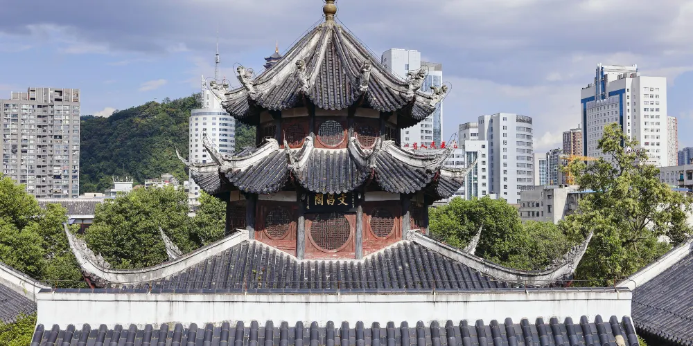 文昌閣坐落於貴陽市區老東門遺址,是一座三層寶塔形建築,原為供奉道教神明文昌帝君之所。因國內閣樓建築的角均為偶數等角,所以擁有九個角的文昌閣便很特別,同時也是與甲秀樓齊名的古建築。雖然如今文昌閣已不是道教之所,而是成為了當地人的茶樓,但這座經典而特別的古建築依然讓喜好歷史與建築的遊客嘆為觀止。