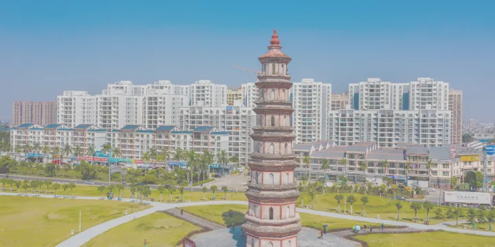 文昌塔位於合浦縣城南,始建於明朝萬曆年間,距今已有三百多年曆史。塔為八角形,是一座七層疊澀密檐磚塔。它的造型從底層向上逐層地變窄,塔頂是一個紅胡蘆。文昌塔每層都開有東西兩個通風門,其餘都是用作裝飾的假門。塔身是白色,角邊和拱門邊是紅色,紅白相間,十分醒目。