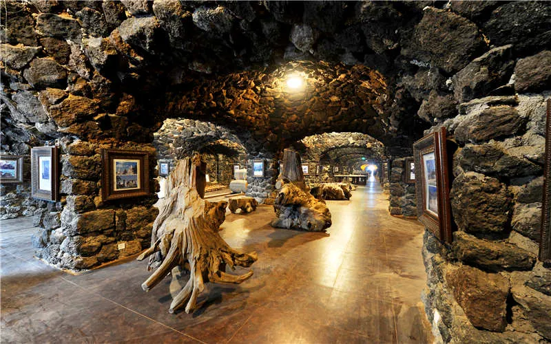 城堡中佔地面積達5000多平方米的地下酒窖更是精彩絕倫,酒窖由黑色和棕紅色火山灰石堆砌而成,展示著如教堂、城堡、古鎮及來自巴黎、倫敦、聖彼得堡等各地的歐洲經典建築,陳列著油畫、雕塑,同時還將介紹歐洲宮廷禮儀,教人欣賞交響樂、芭蕾舞和歌劇等高雅藝術,在濃厚的藝術氛圍中培養貴族生活習慣,提高修養、熏陶氣質。地下酒窖裡還藏有世界各地葡萄酒2000多個品種,介紹推廣葡萄酒文化的起源與發展。