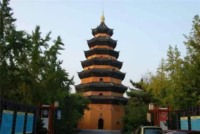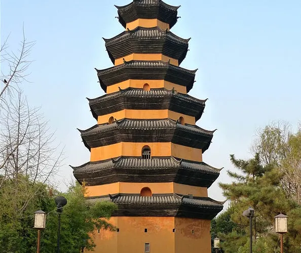 文通塔,原名尊勝塔,始建於唐中宗景龍二年(708年),高44米,13層,明崇禎二年(1629年)重修時因其旁有文通寺而改名為文通塔,此後又曾多次重修。1668年(清康熙八年)郯城大地震時,文通塔僅餘2層,後來重建時衹修了7層。現塔系磚結構,無樑柱,高23米,七層八角,外形為黃身青檐;底層供釋迦牟尼佛像4尊,頂層有觀音菩薩坐像。