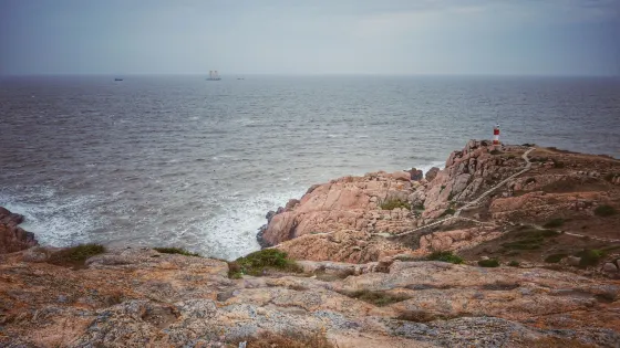 東安島土壤肥沃,黑松、茅草叢生,多巖石、磊石岸,曲折陡峻。