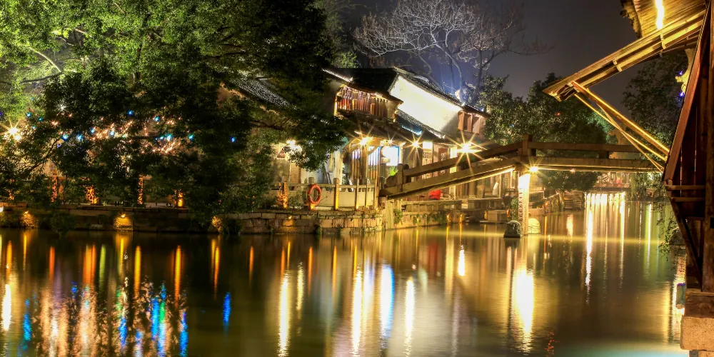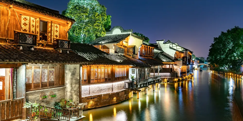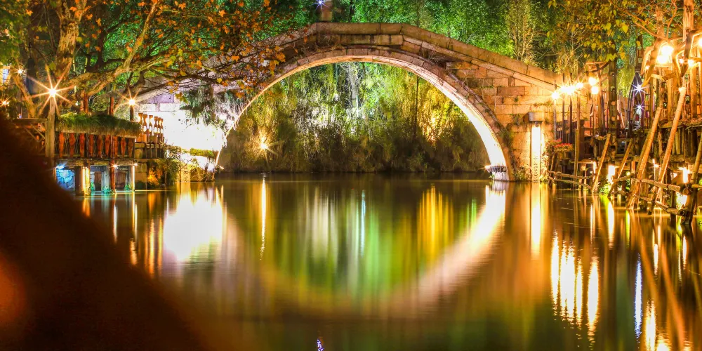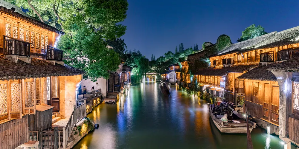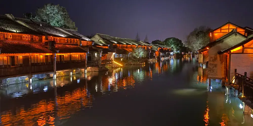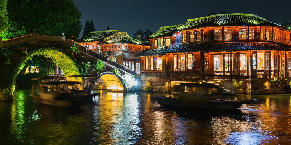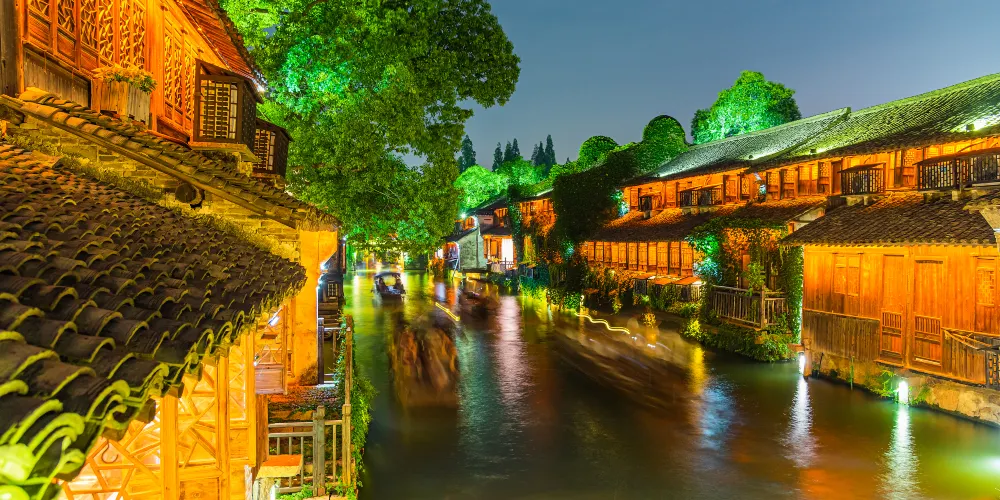 烏鎮是桐鄉北郊一座歷史悠久的江南古鎮,主景區分為西柵、東柵,賞西柵夜景、坐搖櫓船、看民俗表演,是遊人不會錯過的體驗。這裏也是黃磊和劉若英主演的《似水年華》的取景地。