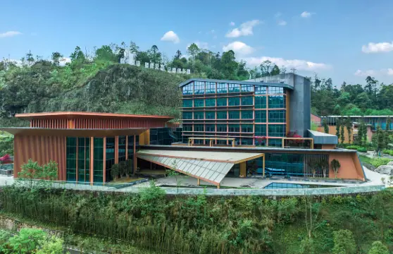 峽谷區域保留了原始地質風貌,遊客可沿著崖壁棧道穿行,俯瞰江水奔湧的壯闊景象,或挑戰輕量級健行路線,感受山石嶙峋的野趣。溫泉區則提供多種泡池選擇,泉水源自地下深層,水質清澈,水溫適宜。泡池依山勢錯落分佈,既有半開放式的觀景湯池,也有綠植環繞的私密小池,滿足不同人群的休息需求。
