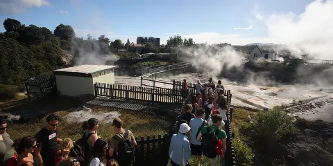 華卡毛利村是介紹紐西蘭原住民毛利人的地方,在這裡可以了解到傳統的毛利文化表演,學習到毛利人如何在日常生活中利用地熱,在羅托魯瓦博物館欣賞毛利文化的曆史,此外還可以參觀地熱池、間歇泉和被淹沒的古老村落等。