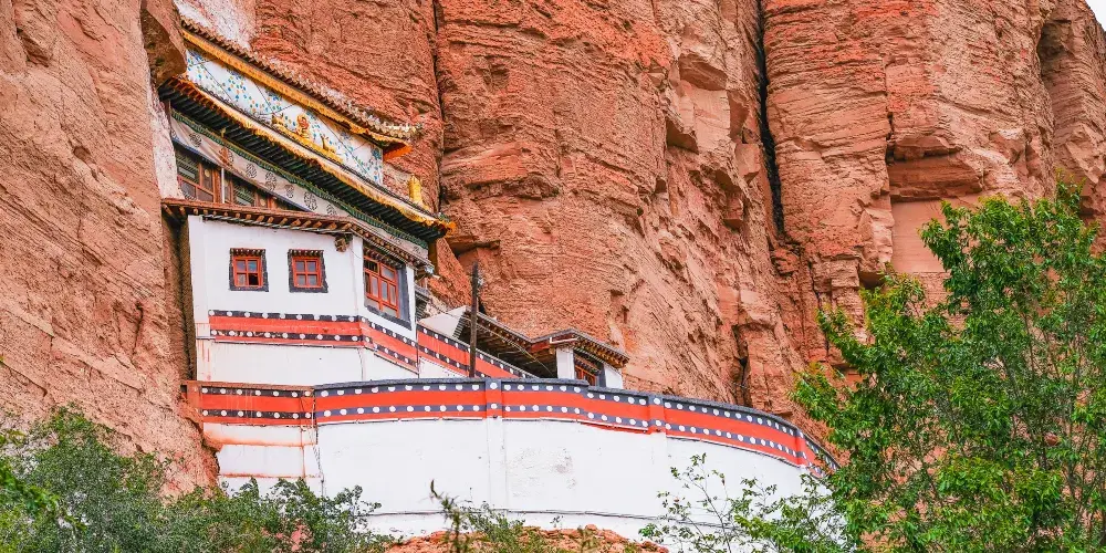 白馬寺位於海東地區互助土族自治縣紅崖子溝鄉白馬寺村,古稱金剛崖寺,藏語稱瑪藏觀。其始建於公元十世紀,相傳喇勤·貢巴饒賽的肉身塗上藥泥後被供於石窟之中。這裡由居於半山崖的經堂、僧舍、石窟、金剛佛像和大佛塔組成,歷經劫難,目前只剩下幾層經堂和僧舍。
