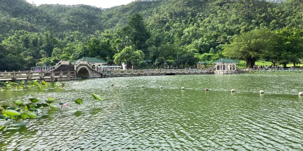 白蓮洞公園相傳建於清朝乾隆間,是一座位於珠海市中心的開放式公園,它隱匿在樹林茂盛的板障山東南麓的山谷中,因“古有僧人隱跡於此,遍種白蓮”而得名。近年來公園中增加了不少寺廟、涼亭、碼頭等人工景緻,與自然山水風景融為一體。由入口一路向北,還可以踏上為紀念澳門回歸而建造的登山石階。