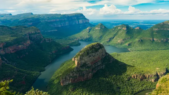 布萊德河意為“歡樂的河流”,沿著R532公路和R534公路(又稱為帕諾拉馬路線Panorama Route)可以觀賞到布萊德河與1000米高的大峽穀交織在-起的壯觀景色。在河穀上方有許多觀景台,可以觀賞自然保護區內,大自然千年滴水穿石的奇特景觀。