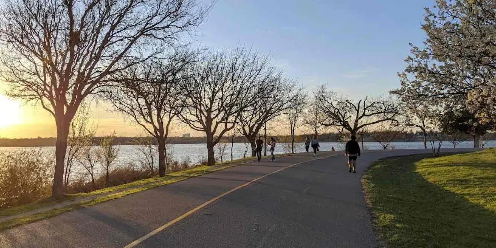 湖周邊適合市民休閒,綠樹成蔭,景色優美。周圍是兒童樂園、健身器材、活動廣場、音樂廳、休息亭、球類運動中心、各類停車場、環湖機動車道和非機動車道、親水平台、衛生間、飲用水,水上釣魚平台、帆船管理中心、船艇訓練中心、船舶屋等公共服務設施一應俱全,方便市民活動之需。