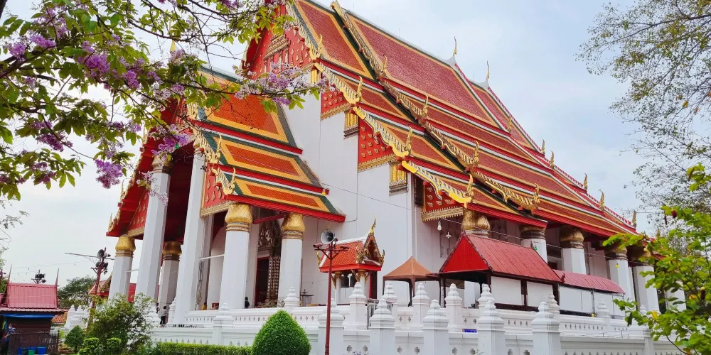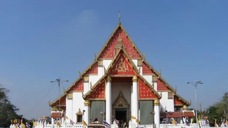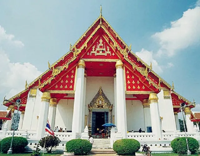 這是一處建於初代國王火葬遺址上的寺廟,規模龐大,在眾多遺迹中值得一覽。據編年史記載,1369年大城的二代王拉梅萱為他的父親初代王選擇的火葬地。現在遊客見到的這座形如玉米的優美高棉式佛塔是後來包若瑪特羅卡納國王在15世紀對寺廟進行改造時建造的。