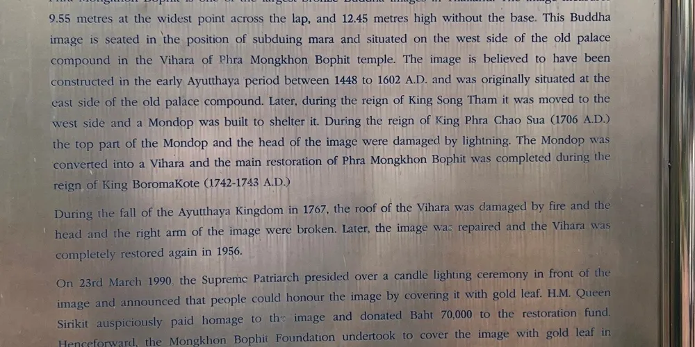 大城王朝因遭到緬甸軍隊的進攻而放棄這裡,緬甸軍隊攻克大城對這裡進行了大肆的破壞,現在王宮周圍和內部儘是殘垣斷壁,建築內的橙色磚塊已經露出,並由於重力的作用而傾斜。包括曾經有一個16米高的站式立佛,表面覆蓋著250公斤的黃金,緬甸軍隊攻陷後將佛像融化了。
