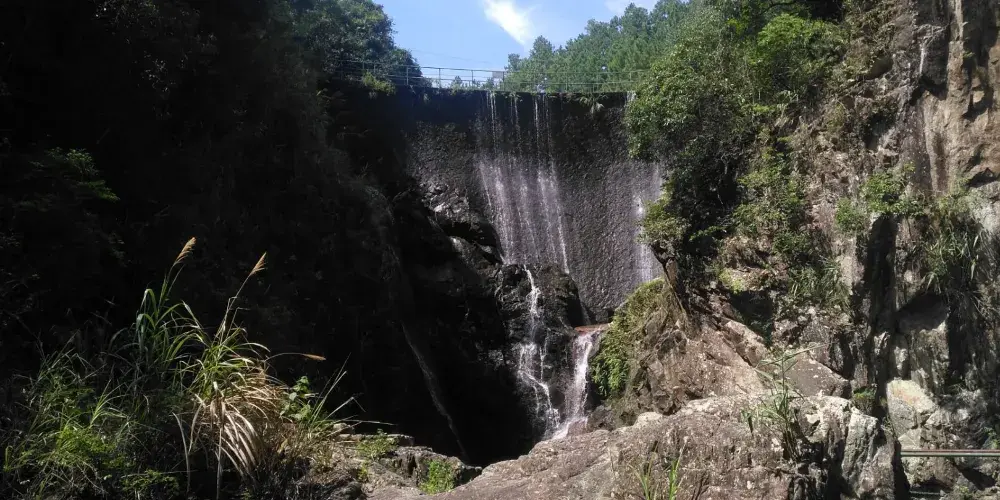則評價雄獅瀑布地處同安和安溪交界處南山、尖山間2千多米長的峽谷中段(同安蓮花鎮軍營村附近),因其壺口狀似發怒雄獅而得名。雄獅瀑布高達百米,寬麪52米,水量充沛,一年四季奔騰不息,被譽為“閩南一瀑”。奇妙的是,瀑布下端挺出一塊巨巖,酷似發怒的雄獅蹲在瀑布底部,水流沖浴着獅頭,傾瀉而下。巨大的水幕奔騰呼嘯,發出獅吼般的轟鳴聲在山谷間迴響着,故名雄獅瀑布。瀑布下方的水潭約200平方米、有5米深,瀑布瀉落處,形成一泓數百平米的碧水,像是一面玉鏡,輕風吹來,盪起幾波漣漪,碧水順着地勢,穿行在峽谷裏。