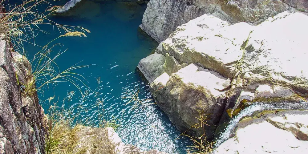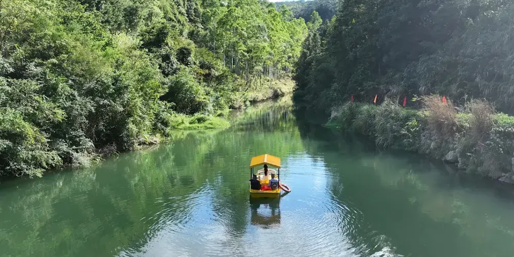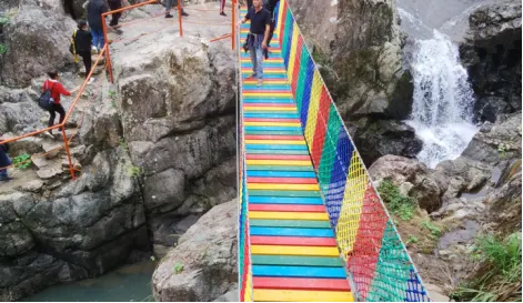 當地人把蝴蝶谷稱作“石船坑”。景區裏除了蝴蝶是一景,沿途的山林、石頭和溪流也讓人陶醉,還有9個連環瀑布十分壯觀。