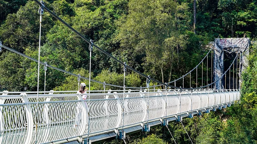 野山谷生態樂園位於同安西北部蓮花鎮小坪村與水洋村的交界處,是廈門蓮花國家森林公園六大景區之一。野山谷以“森林、幽谷、飛瀑、流泉、雨林”為特色而聞名,園內散落山澗中的磐石、洞穴等,令人嘆為觀止。園區內植物種類多樣,藤蔓纏繞,林中野花小草叢生。景區集山野自然生態和生態娛樂、生態休閒為主題,是遊客休閒放鬆的好去處。