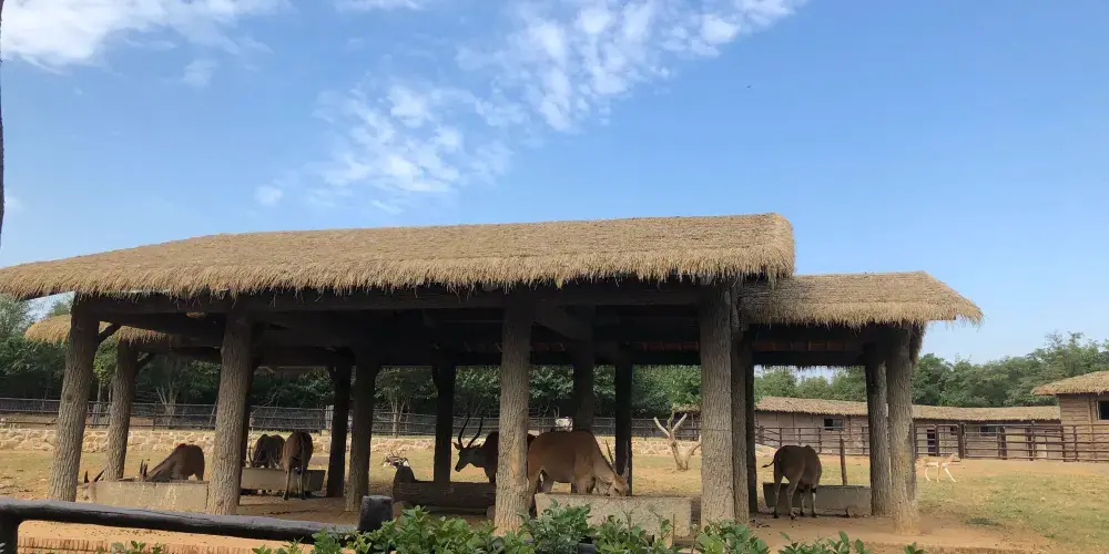 乘車遊覽區以「地理生境」展示分區,由非洲草原、高寒山地、澳洲山林、狂野地帶、亞洲草原5個區域組成,以散養和圈養相結合的方式,飼養著各類珍稀保護動物。