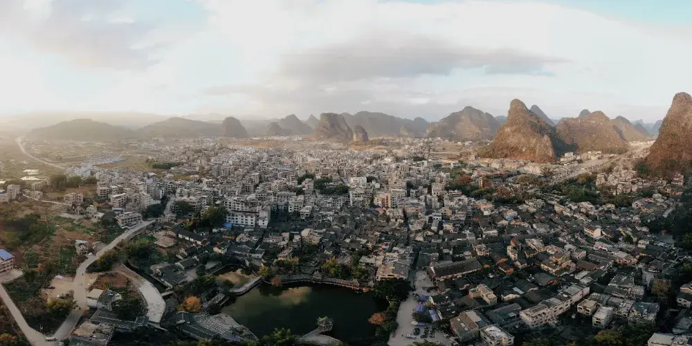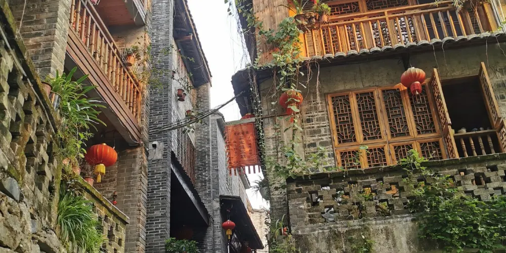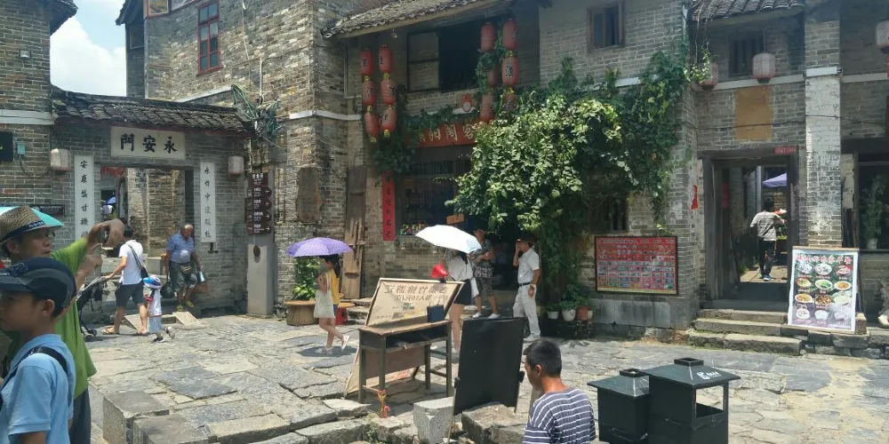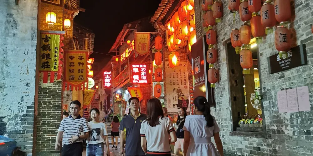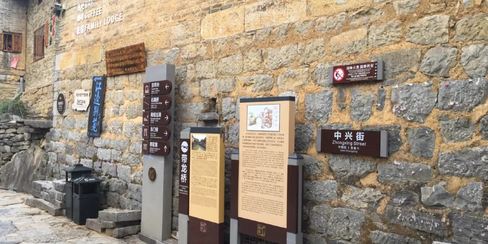 黃姚古鎮較出名的景觀之一就是黃姚石板街,黃姚石板街目前有8條,分別為:金德街、迎秀街、天然街、中興街、安樂街、連理街、龍畔街、山磅街。迎秀街的石板街最闊,約5米;最窄處為金德街羊巷口,不到兩米,兩旁各擺肉台一張,行人相對而行,只能擦肩而過,每逢墟期節日,交通為之阻塞。