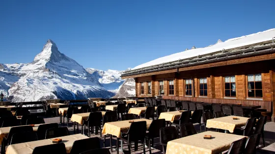 洛特峰海拔3103米,是欣賞馬特宏峰最快速易達的觀景地點。有人說從這裡看到的馬特宏峰是最美的角度,還能看到38座海拔超過4000米的連綿群山。漫步賞景之外,峰頂還有一間餐廳,可以在露台上愜意地欣賞美景。