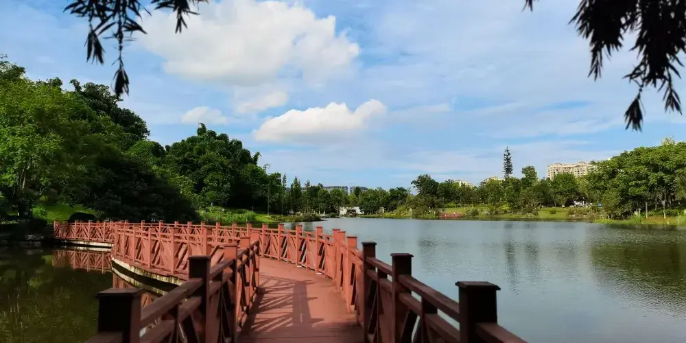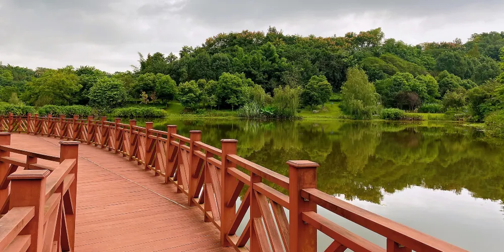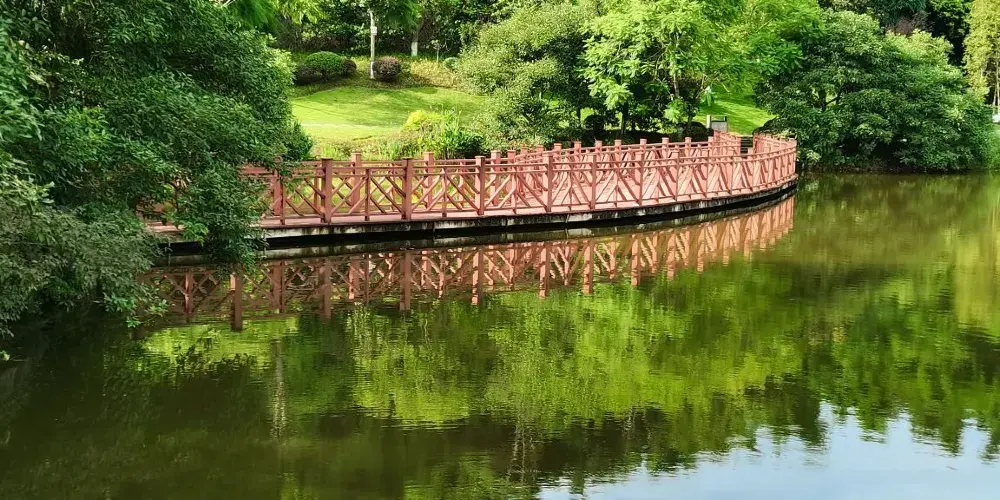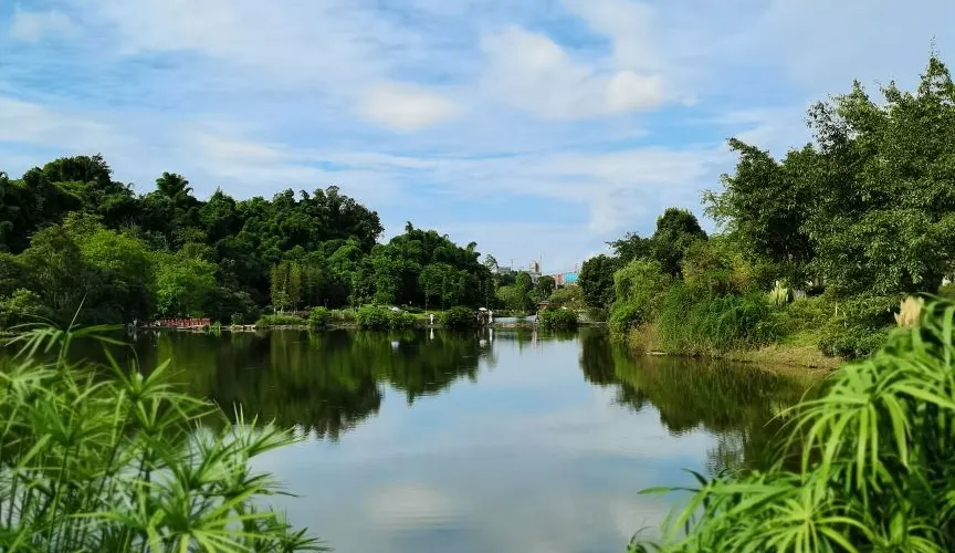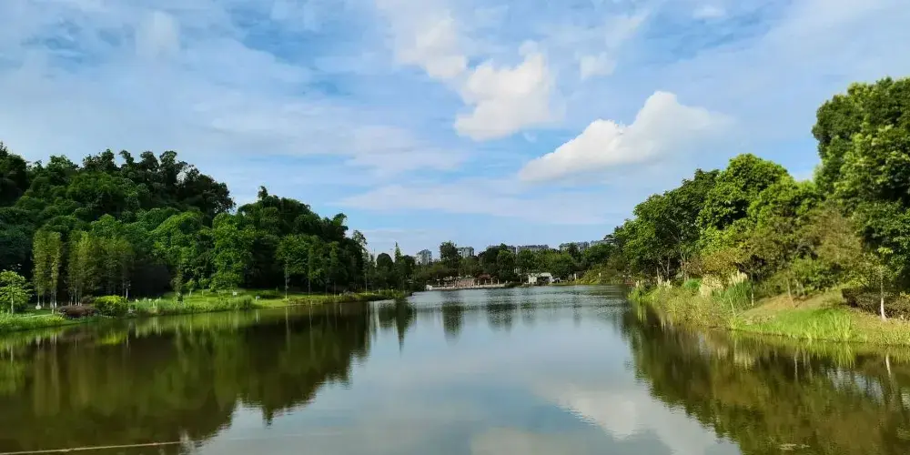 則評價自貢市的一個生態公園,一半是水面,水中有小魚,環境挺不錯的。