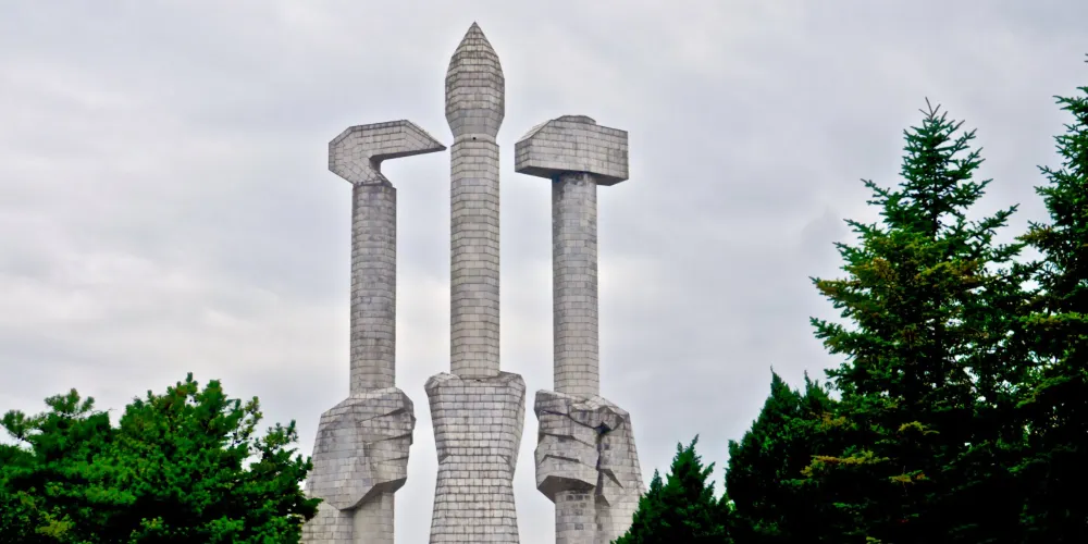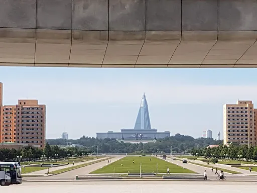 主體思想塔位於平壤市中心大同江畔,塔高170米,塔身分70節,由25550塊花崗岩砌成,象徵著金日成主席70壽辰和70年天數的總和。