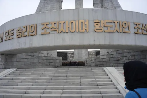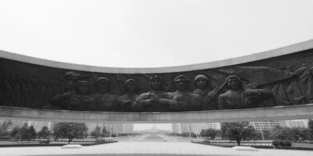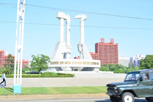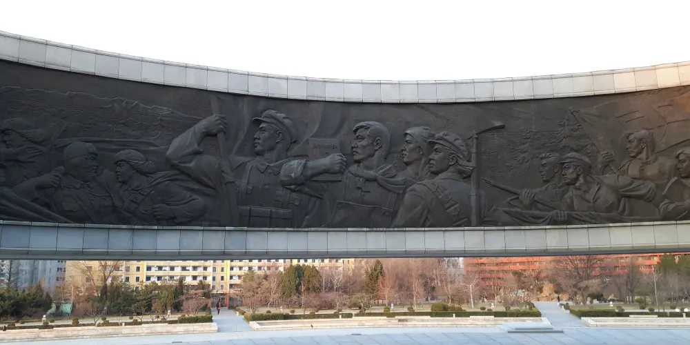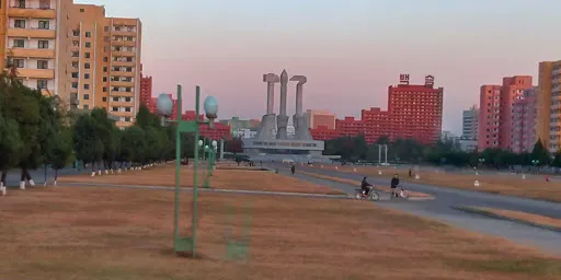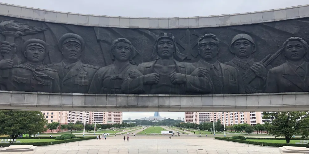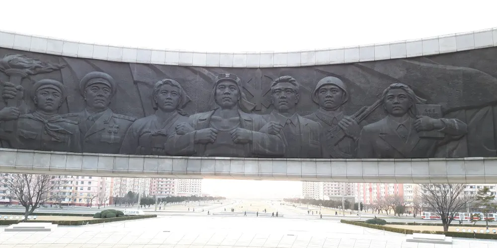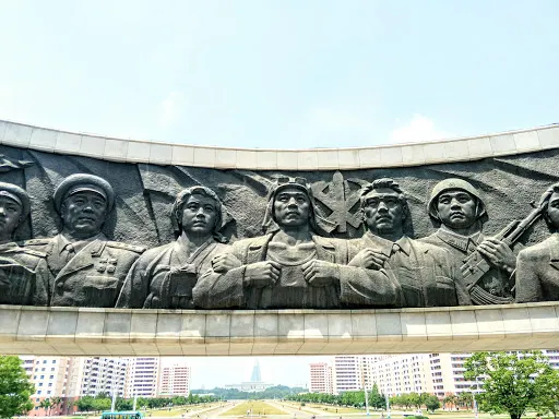 金日成是朝鮮人民尊重的主席,在三五人高的金日成廣場銅像前,時不時會有虔誠的朝鮮人民,恭敬地走上前,深鞠一躬,會中文的地陪小姐說,當地人每天上班前到此是家常便飯,每逢空閒,人們還會不約而同地就近便到有金日就到此社區進行成清雕像。