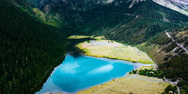 無底湖藏語意為「沃迪措」。位於迪隆雪山腹地海拔約3800米處,由兩個高原湖組成,迪隆雪山位於香格里拉格咱鄉,屬於中甸大雪山山脈,主峰海拔約5004米,4000米以上山峰有近百座。迪隆雪山動植物種類繁多,高山花卉爭奇鬥艷,擁有40多個高山湖泊,湖水清澈無比。