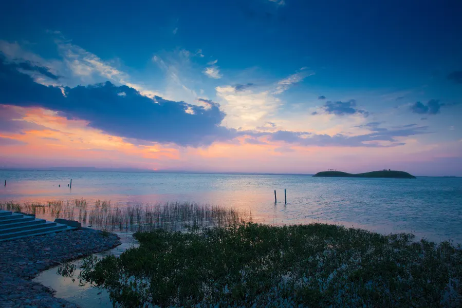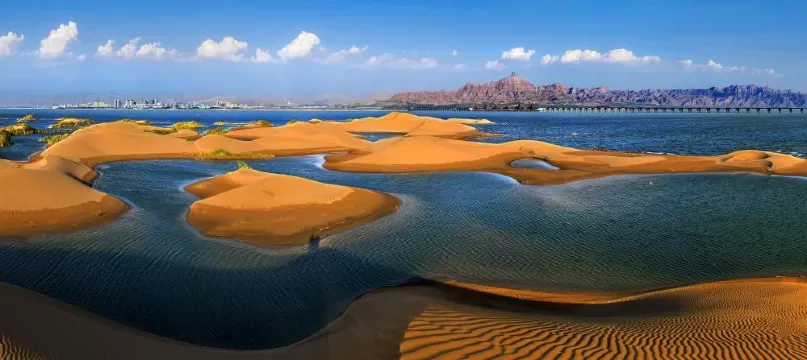 烏海湖休閑度假旅遊區是由黃河海勃灣區水利樞紐工程建成後形成的118平方公里的舒緩水面及環湖區域,與甘德爾山生態文明景區共同呈現出一片水沙相映,山水相連的壯觀景象。橫貫烏海市南北,涵蓋烏蘭布和沙漠、烏蘭淖爾湖、烏海湖、胡楊島、兔島等風景區,由東向西遠遠望去,波光明淨、碧水連天,直抵金沙岸畔,一邊是碧水、兔島等風景區,由東向西遠遠望去,波光明淨、碧水連天,直抵金沙岸畔,一邊是碧水、一邊是金沙,大氣磅礴,渾然天漠成,構成一幅「大漠出平湖」。烏海湖休閑度假旅遊區集大漠、平湖、蘆葦、飛鳥、沙山、遊魚6大景源的有機結合,是原始生態休閒旅遊的好選擇。景區結合了沙漠營地、水上娛樂、低空飛行等陸海空體驗項目,已開發了「沙漠遊」「水上游」等一批水上遊輪觀光遊、沙漠越野觀光遊、蘆葦蕩特色遊等綠色旅遊路線,帶來全新的體驗觀感。