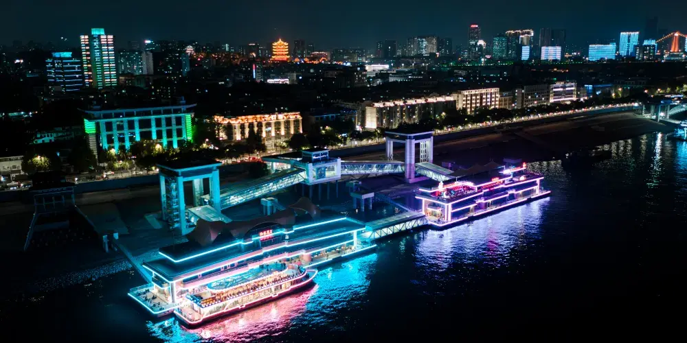 船兩江晴川、兩江盤龍、東湖號、李白號、君旅號等系列豪華遊船,及粵漢碼頭、漢陽門碼頭、紅巷碼頭、苗家碼頭等多處配套碼頭。遊船內設多功能廳、陽光甲板、酒吧等,可為客户度身打造企業活動、商務會議、遊船婚禮、客户答謝、招待酒會、公益活動、學術交流、公司宴會、文藝演出、文化沙龍、賓客聚會、休閑旅遊等一系列活動。給你帶來不一樣的遊船體驗。