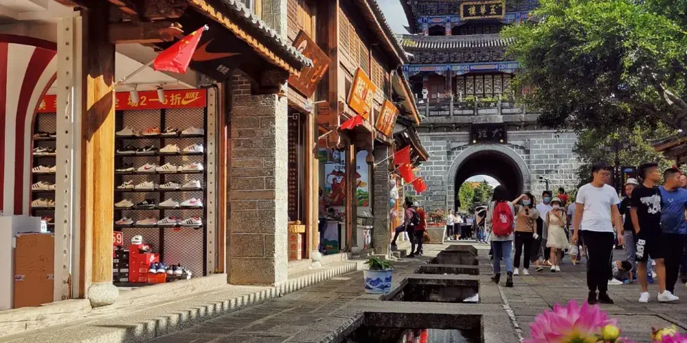 遊玩大理古城,人民路是每個遊客都不會錯過的地點。漫步在街邊,兩旁店家主要都是古董店、手工店、清吧、書店等,趣味十足。街頭常會有獨立音樂人在演唱自己創作的歌曲,也有很多擺攤販售賣自己作品的手工藝者,他們多是旅行到這裡,決定停留一陣子的年輕人。