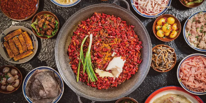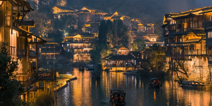 烏江寨內匯集國內多種菜系,輕貴客餐廳有湘菜的火辣、江南小館有著浙菜的精緻,還有四川名小吃蹺腳牛肉、咕咚火鍋……酸甜鹹辣,為你帶來一場味覺盛宴。