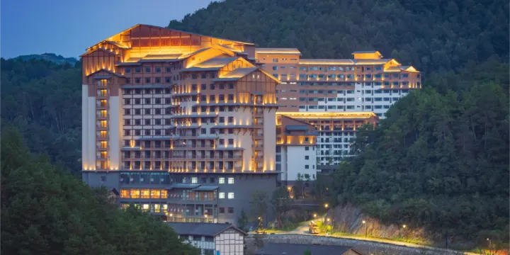 ①暮山酒店以柞蠶文化為主題,是度假區內規模較大的主題度假酒店,推窗即可欣賞山景,視野開闊自然。酒店共有15層,設有327間客房,並配備大型多功能廳、宴會廳、會議廳等豐富場地資源,能滿足各類商務聚會需求。酒店客房寬敞舒適,拉開紗簾,可眺望烏江寨朦朧山色,或遠觀山頂的廻龍塔;牆面採用絲質材料,手繪了一幅清朝時期貴州百姓在花前樹下載歌載舞的愜意場景;深藍色地毯營造出沉靜氛圍,舒適寧靜。在烏江寨,入住暮山酒店,細賞山色悠閒度日,是您度假休閒的理想之選。